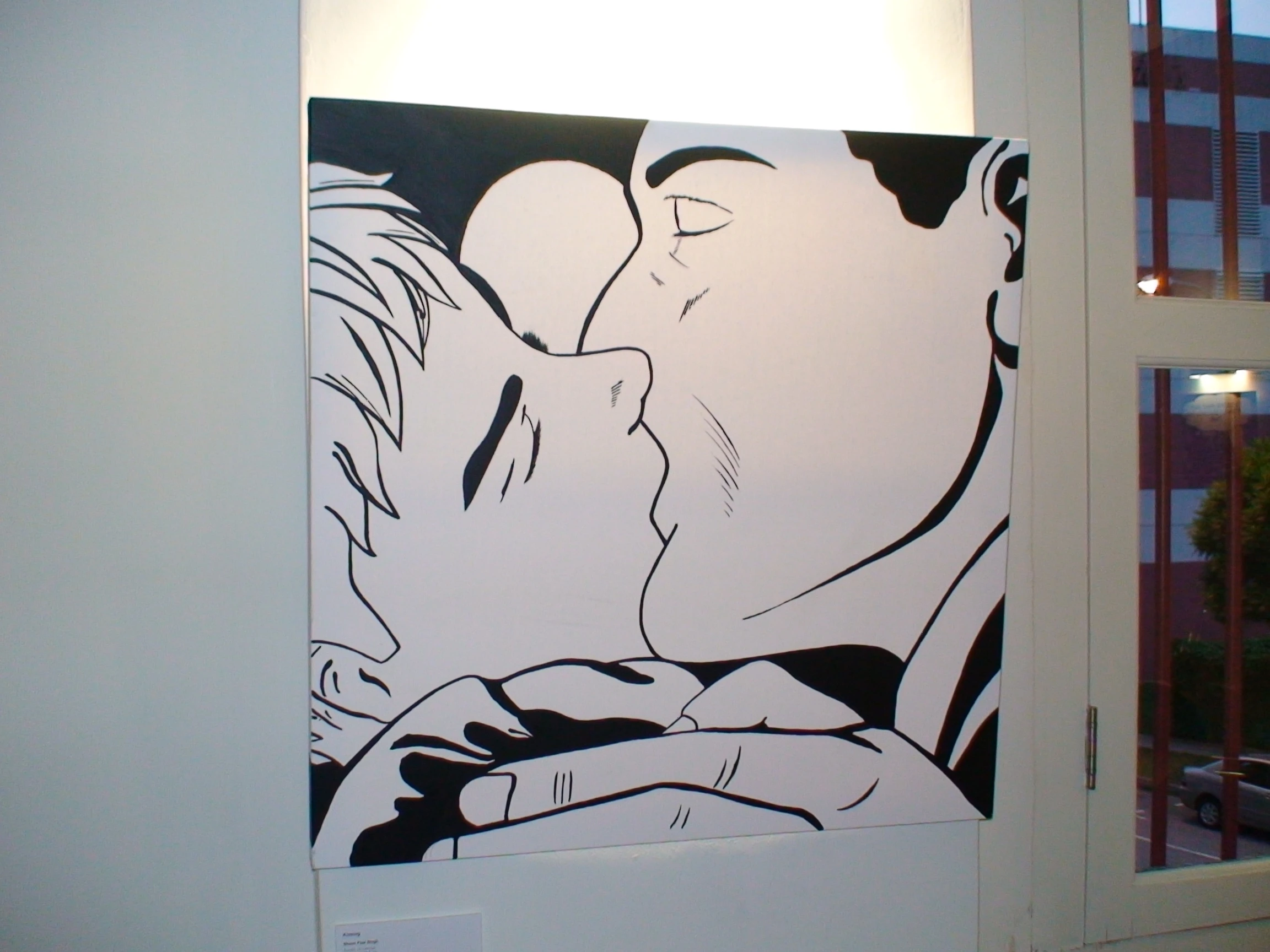 Kissing by Shaun Paul Singh is close-up graphic of two lovers with interlocked lips. Their passion fills the frame completely — you see nothing else — just as that moment fills the two characters emotionally, eyes closed. You cannot easily avert your own eyes; by its boldness, there is nothing else to see but two men in a wet embrace. There are no excuses for not noticing, but are there still excuses for passing judgment?